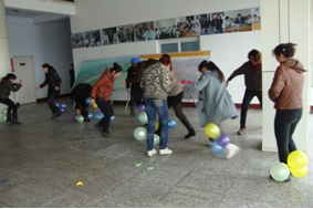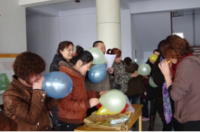 公司女職工踴躍報名,積極參與?;顒蝇F(xiàn)場內(nèi)容豐富,形式多樣,有吹氣球、踩氣球、袋鼠跳、顛兵乓球、夾彈珠、滾輪胎、搶座位、運球50米賽共8個游戲。女員工們不甘示弱,各顯身手,各個表現(xiàn)神勇,現(xiàn)場歡笑聲、加油聲此起彼伏。